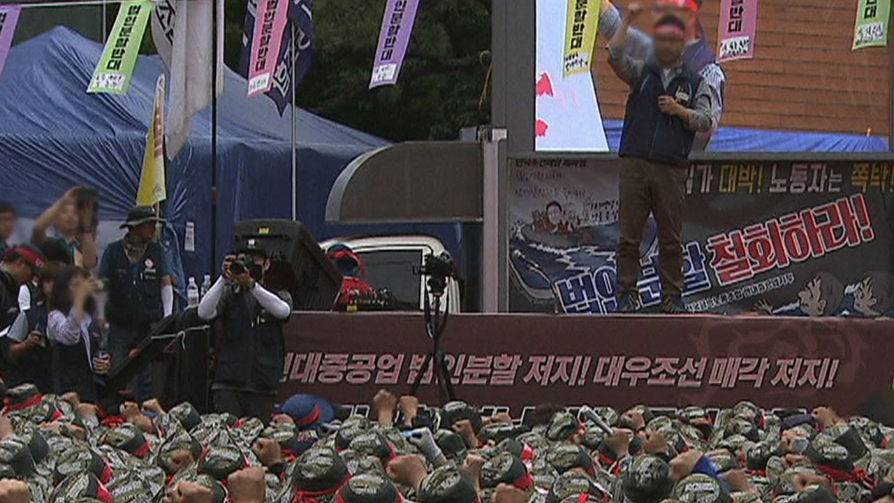 현대중공업 주주총회에서 대우조선과 합병 진행을 위한 안건이 결국 통과됐습니다. 노조 측은 주주총회 장소를 기습 변경해서 통과시킨 건 원천 무표라며 크게 반발하고 있습니다.
