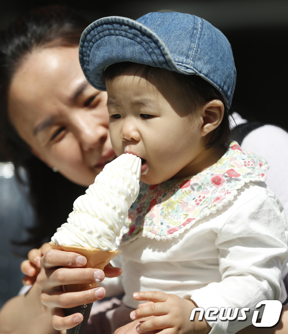 | 초여름 날씨를 보인 7일 오후 대전 대덕구 한 거리에서 한 아이가 아이스크림을 먹으며 더위를 식히고 있다. 2019.5.7/뉴스1 © News1 주기철 기자 |
